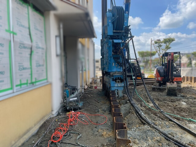 近接する構造物に対して隙間ゼロの状態で施工可能。建築断面が広くとれる。