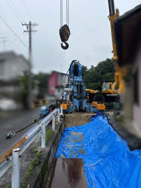 - 今回、採用されたゼロクリアランス工法(オーガ併用)は、民地境界線と既設護岸のクリアランスの間でかつ、N値50以上の地盤でも施工が可能になります。
