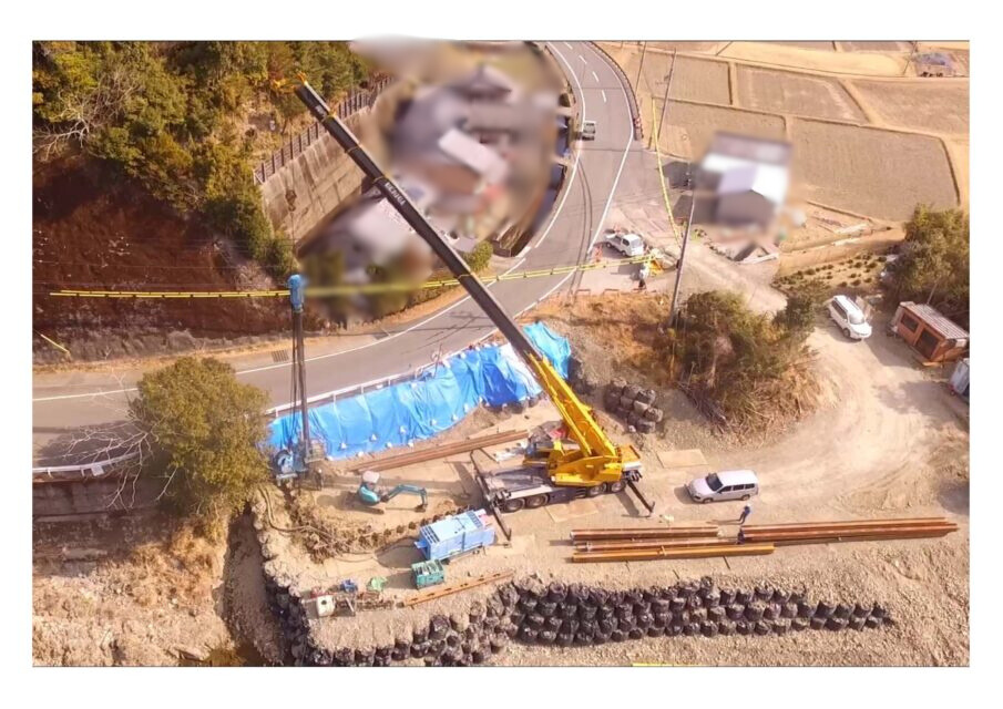 - SCU-ECO400Sを使用する。ヤード内に構造物造成する際、土留めの効果が期待できる。